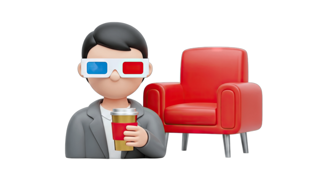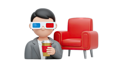 Movie Night Popcorn Drink Film Reel and 3D Glasses PNG Transparent Background