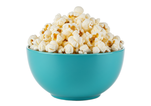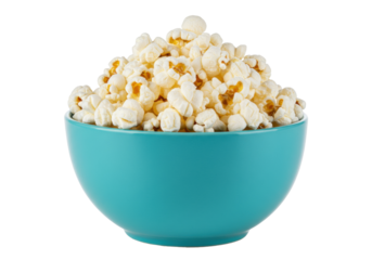 Bowl of popcorn isolated on white, delicious snack for movie night in PNG format, salty treat for parties and gatherings