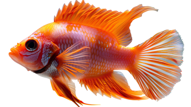 The AI-generated photo of a colorful Betta fish, with a vibrant orange and yellow body and flowing fins.