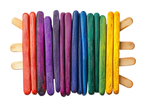 Colorful rainbow popsicle sticks arrangement on artistic display high fidelity creative concept isolated on transparent background png