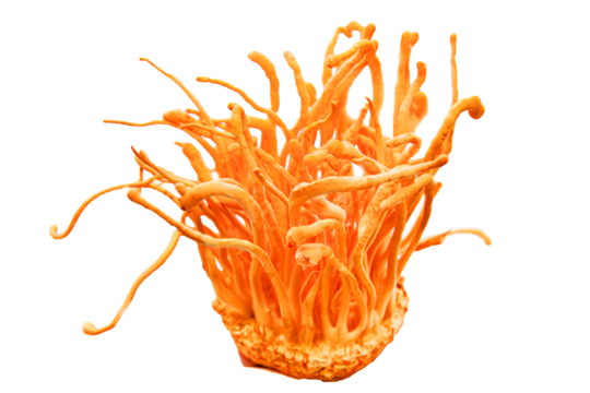 Vibrant botanical illustration with mushrooms and flower, transparent background