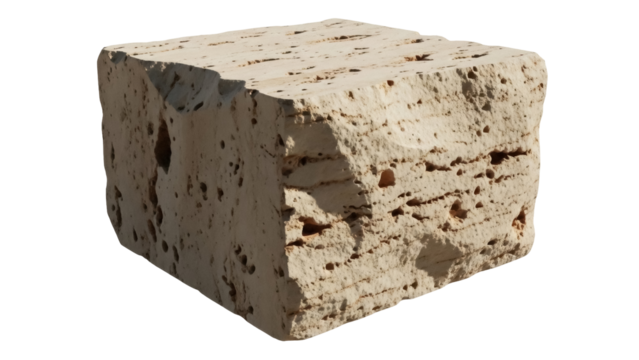 Rough limestone chunk displaying porous texture and pale beige color