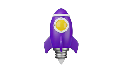 Collection of vintage-style rockets taking off, red and white with a blue port hole, emitting a fiery yellow exhaust and white smoke, isolated on a white background or transparent
