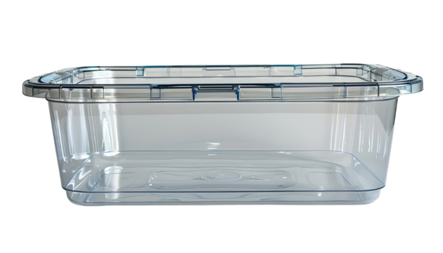 Clear plastic storage container ideal for organizing household items, crafts, and food storage efficiently.