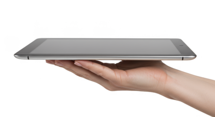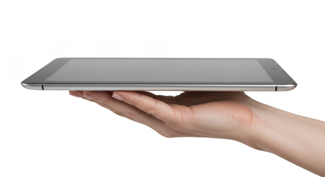 Hand Holding Silver Tablet Modern Digital Device Transparent BG