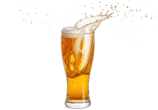 Beer splash in a glass, isolated on transparent background