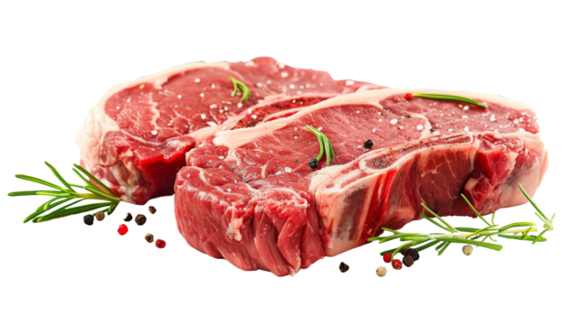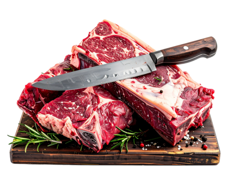 Fresh raw beef slices isolated on transparent background premium cuts for grilling, roasting, and searing, delivering exceptional flavor and tenderness in every bite