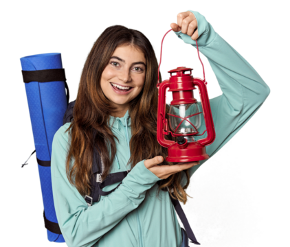 Young Caucasian woman in studio setting happy, smiling and cheerful.