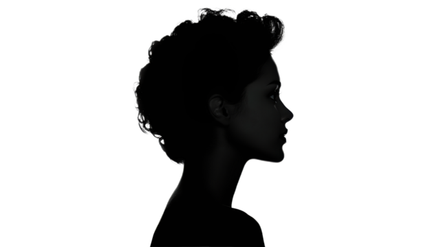 Curly haired womans elegant silhouette