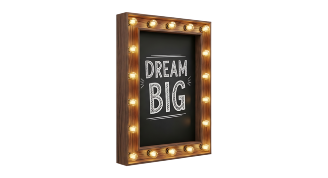 Dream big motivational quote in white stylized font with a subtle glow isolated on transparent background