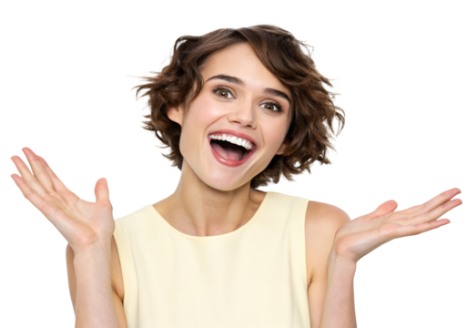 Smiling woman with cupped hands positivity transparent background