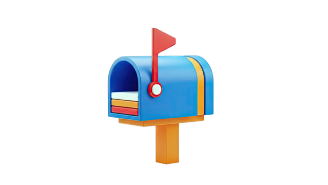 Blue 3D Mailbox with Red Flag and Letters