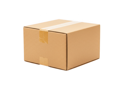 Cardboard box mockup packaging delivery container carton shipping postal storage brown rectangle isolated on transparent background