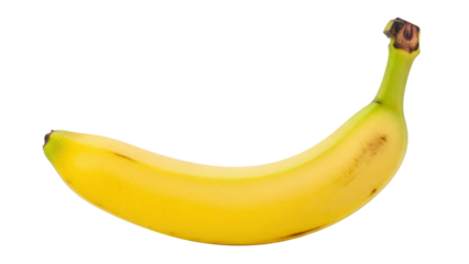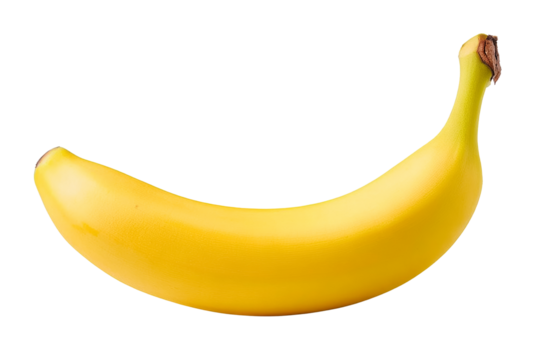 Ripe yellow banana isolated on transparent background, tropical fruit rich in potassium for healthy eating and snack