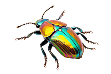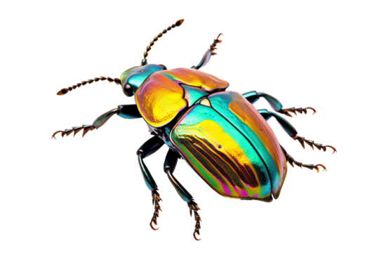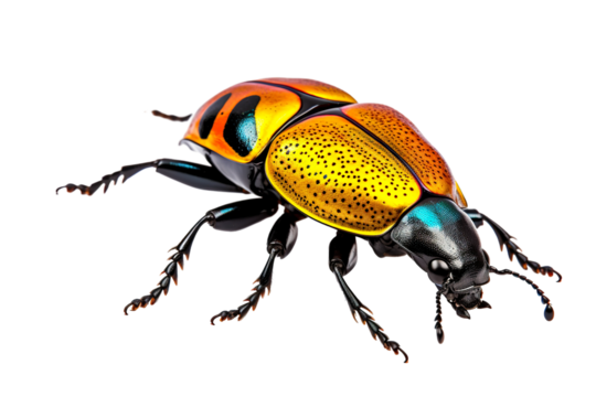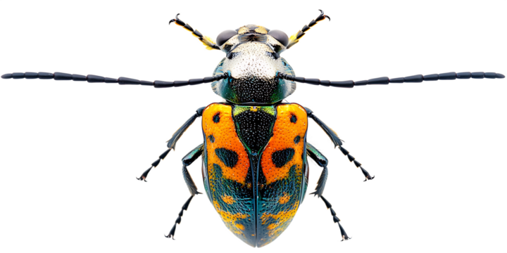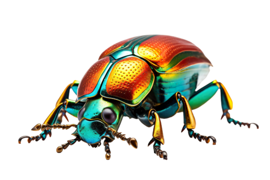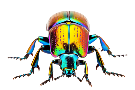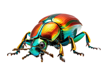Top side closeup macro view of beautiful Beetle isolated on white background PNG