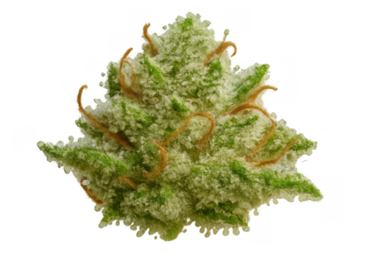 Cannabis bud with trichomes and pistils, a close-up of marijuana flower for medical or recreational use