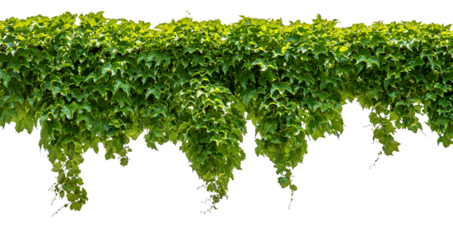 Cutout ivy with lush green foliage, Virginia creeper, wild climbing bush vine as top frame, isolated
