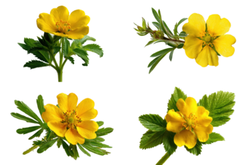 PNG, Vibrant Yellow Cinquefoil Cutout: Five-petal flower perfectly isolated, a cheerful, high-quality resource for designers