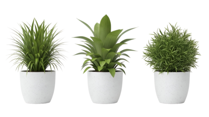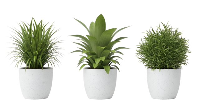 Tall potted plant with lush green variegated foliage in a terracotta pot, cut out transparent