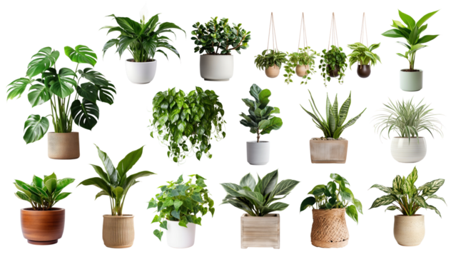 Lush green potted indoor palm plant with broad fronds in a decorative container for home decoration or interior design