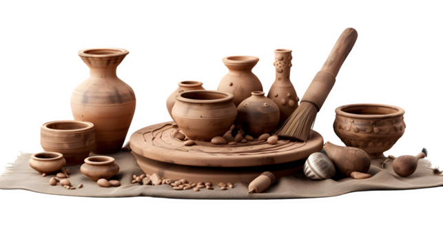 Clay pots showing traditional pottery techniques isolated on transparent background