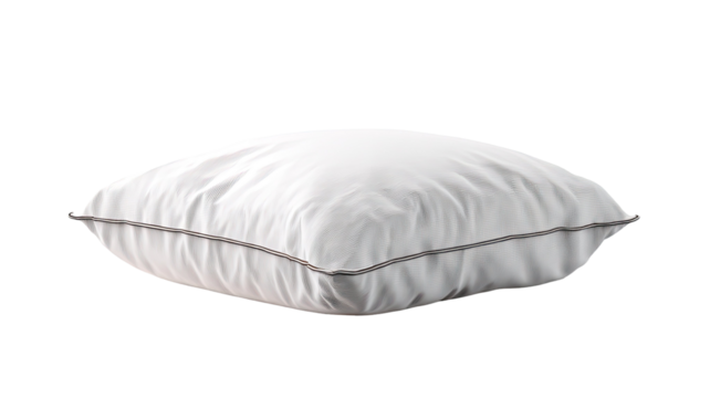 A simple, round, beige pouf or ottoman provides a minimalist seating option, isolated on transparent background