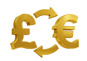 Golden pound sterling symbol with transparent background