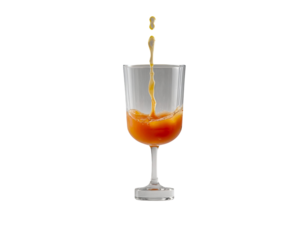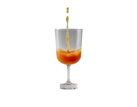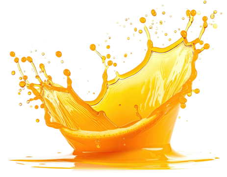 Orange juice splash with dynamic liquid crown and scattered droplets on a transparent background for beverage advertising and healthy drink concepts