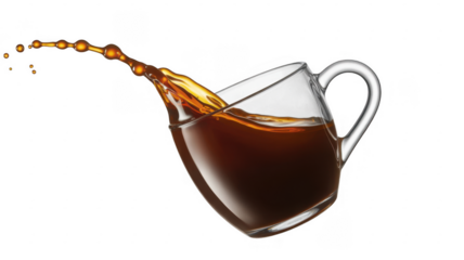 Tea splash with steam - brown tea splash with steam rising on transparent background