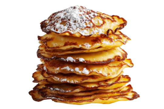 Sago Pancakes thin crepes or stack of pancakes topped with powdered sugar, isolated on white transparent background, Papua New Guinea breakfast