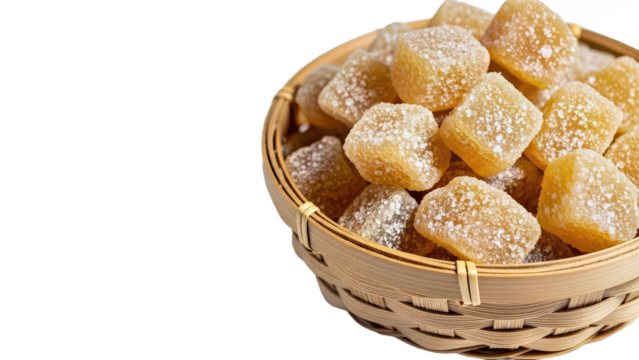 Handmade Artisanal Powdered Sugar Candies in Natural Woven Wickerbasket for Gourmet Dessert Serving.png