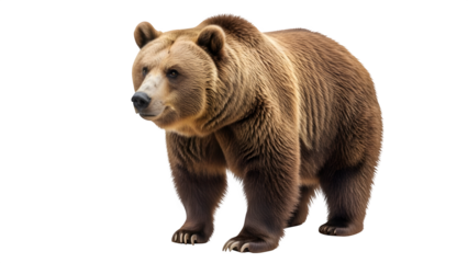 Ferocious brown grizzly bear roaring fiercely in a dramatic pose showcasing its strength and power against a transparent background