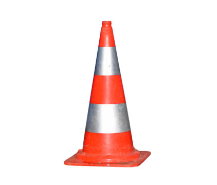 Orange traffic cone with white lines isolated on a transparent background