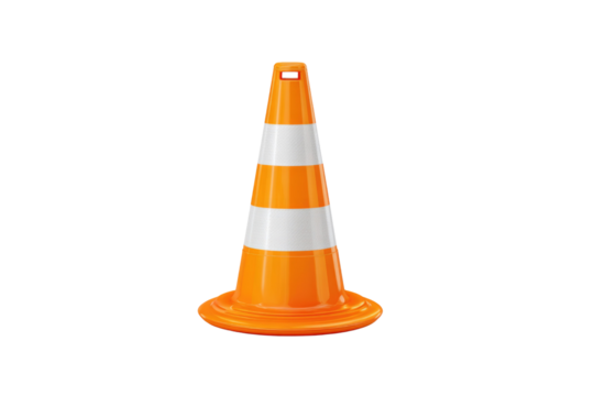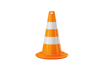 Orange and white traffic cone signaling caution on transparent background