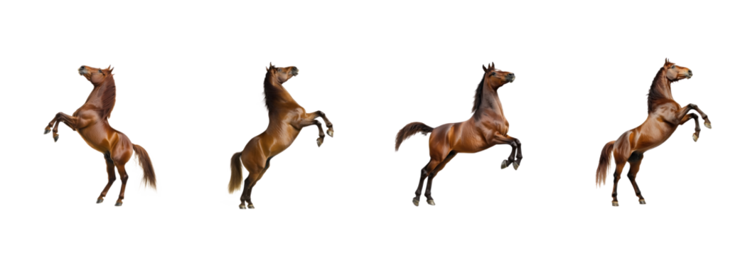 Collection of Horse rearing A horse stands on its hind legs, front legs lifted high and tail raised. full length isolate on transparent background
