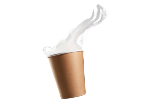 Paper coffee cup with splash and steam on transparent background