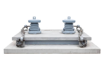 Heavy duty industrial electrical insulator assembly on a concrete base.