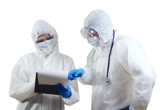 Medical team in personal protective Equipment or PPE clothing researching and discussing for patients infected with the covid 19 virus and treatment in emergency and Laboratory at hospital