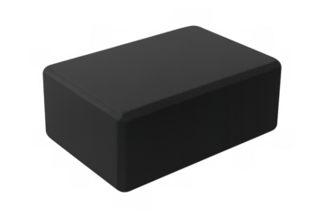 Yoga practitioner using black foam block for supporting challenging poses, improving alignment and flexibility against clean transparent surface