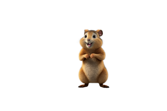 A cheerful, cartoon chipmunk stands happily, paws together, against a transparent background. background removed