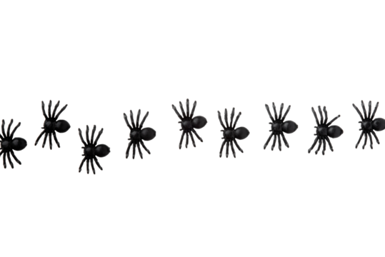 Black spiders isolated on a transparent background. A design element for celebrating Halloween