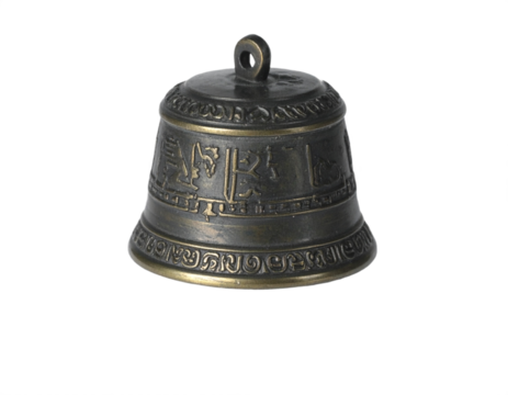 Antique Tibetan prayer bell with intricate script and ornate detailing, a symbol of peace and spirituality