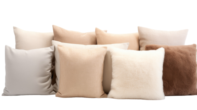 A whimsical display of various pillows stacked one on top of the other in a precarious yet fascinating arrangement