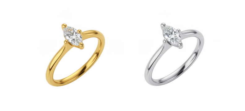 Pear shaped diamond rings in gold and silver isolated on a transparent background