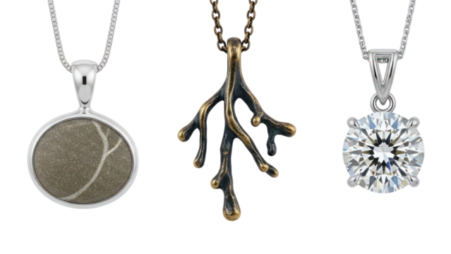 Three elegant necklaces with pendants isolated on transparent background