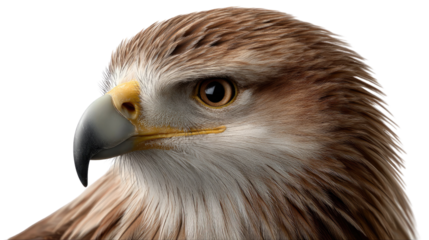 Transparent majestic brown eagle with sharp gaze in profile view