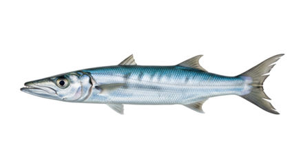Isolated predatory barracuda fish, silver with dark blue back, dangerous ocean wildlife