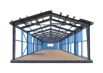 Industrial Steel Frame Building Structure with Wood Floor isolated on a transparent background
