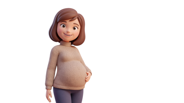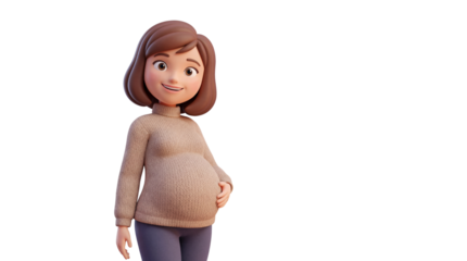 Smiling 3d rendered pregnant woman holding her baby bump lovingly on transparent background