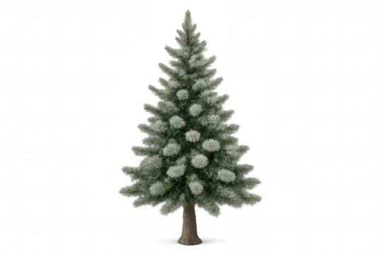 Christmas tree with snow on branches, preparing for holiday season, festive winter decoration